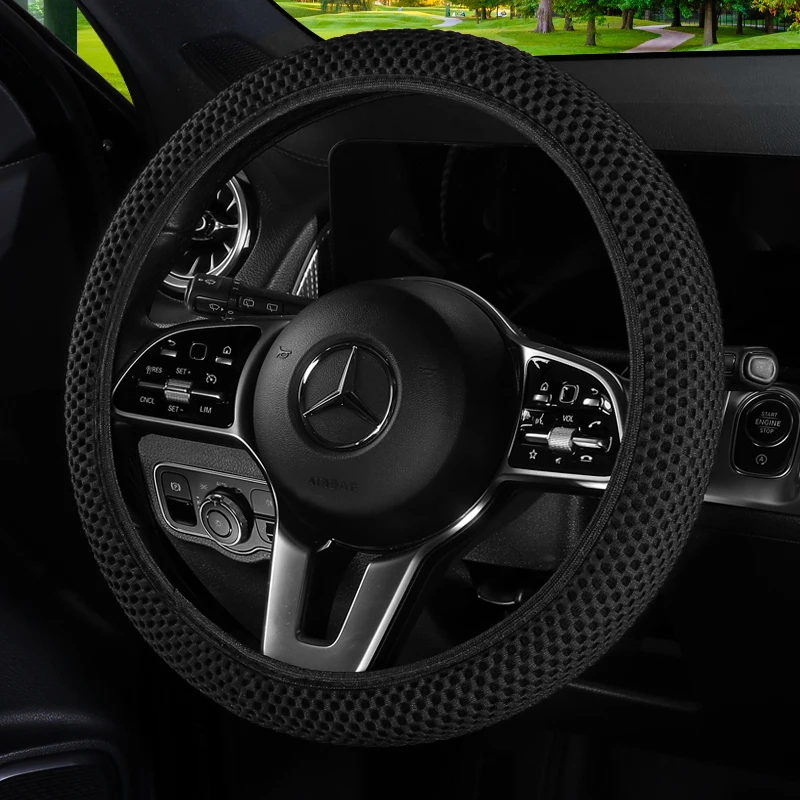1PC Cloth Mesh Car Steering Wheel Cover No Inner Ring Universal Fit Most Cars Anti-Slip Wear-Resistant Automotive Accessories